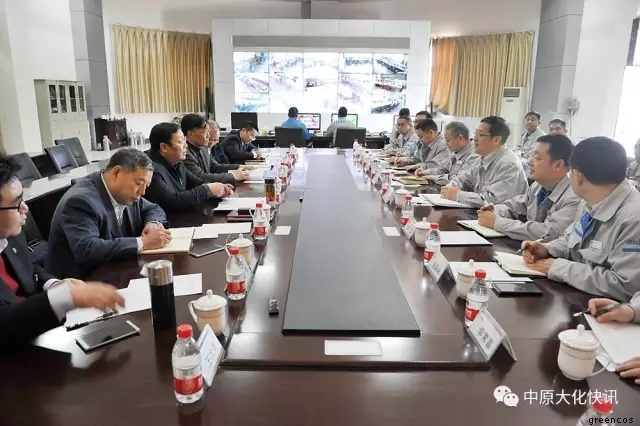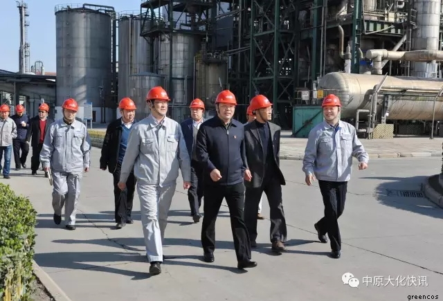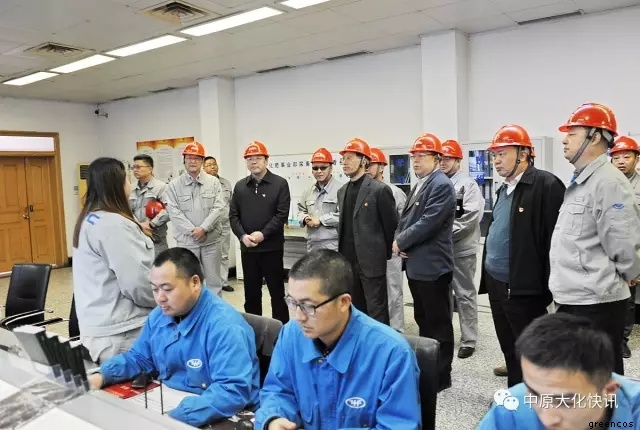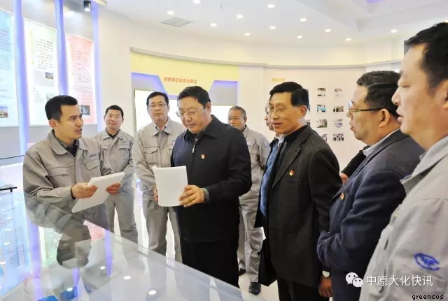 在天然氣化工裝置區(qū),馬富國在聽取了有關(guān)生產(chǎn)裝置的運行情況介紹后,又向化肥事業(yè)部的管理人員詳細(xì)詢問了他們在經(jīng)營管理、員工培訓(xùn)、新產(chǎn)品開發(fā)等方面的好經(jīng)驗、好做法,并勉勵大家不僅要優(yōu)化裝置運行,搞好安全生產(chǎn),而且要不斷進(jìn)行知識更新,開闊眼界,努力開發(fā)出具有高附加值的產(chǎn)品,走高端發(fā)展的道路。在煤化工裝置區(qū),馬富國親切看望了生產(chǎn)一線員工,并對甲醇裝置長周期運行所取得的成績給予了充分肯定,同時要求甲醇事業(yè)部要安全、環(huán)保一起抓,精心操作,穩(wěn)定運行。在中原大化公司展廳,馬富國一行興致勃勃地參觀了公司發(fā)展歷程展覽,并指示中原大化要扎實做好綠宇公司新三板上市的各項工作,加快推進(jìn)上市步伐。